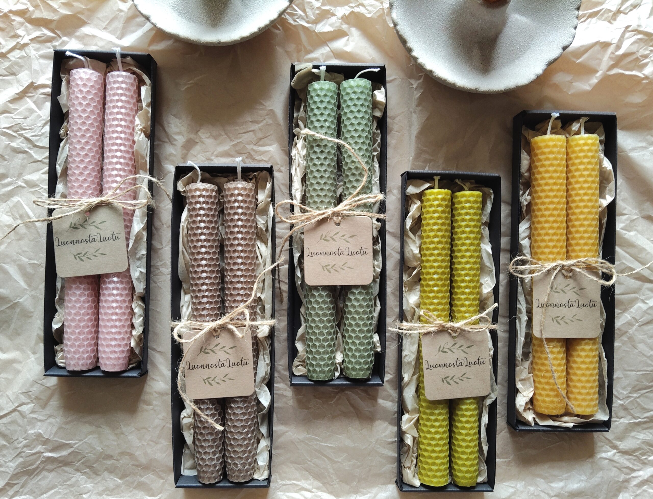 Näitä kynttilöitä voin ylpeydellä kutsua luonnosta luoduiksi artesaani-kynttilöiksi.