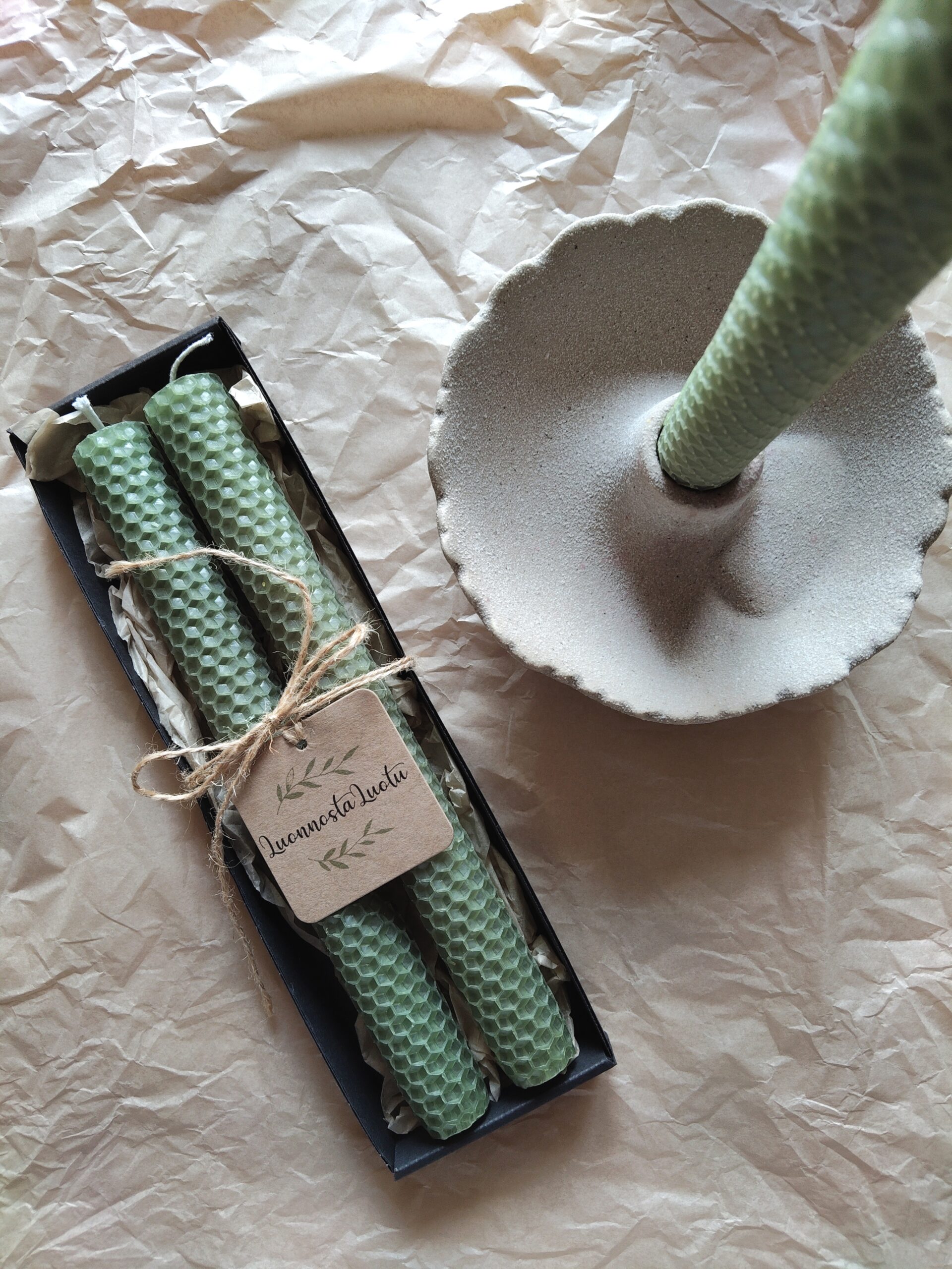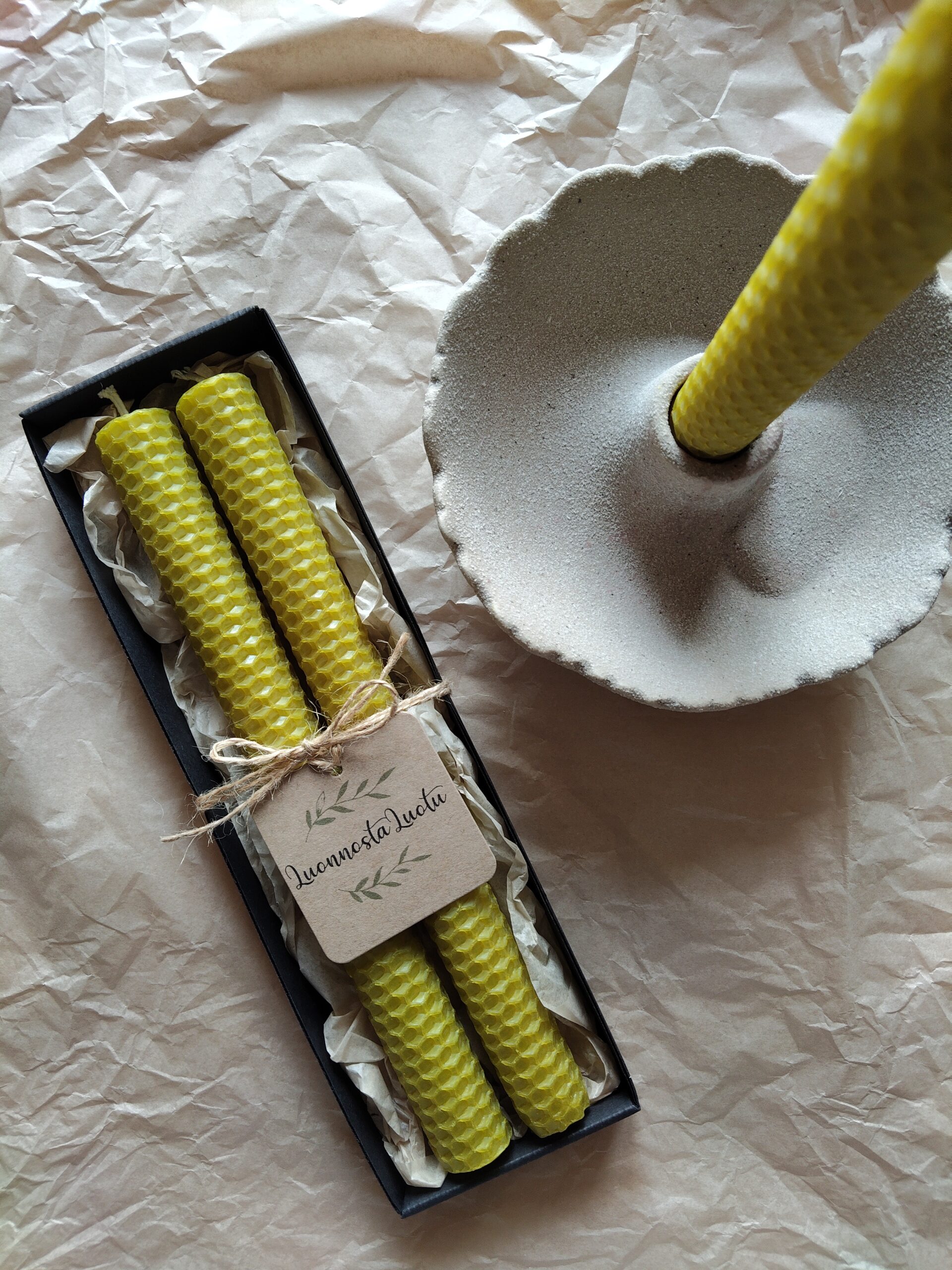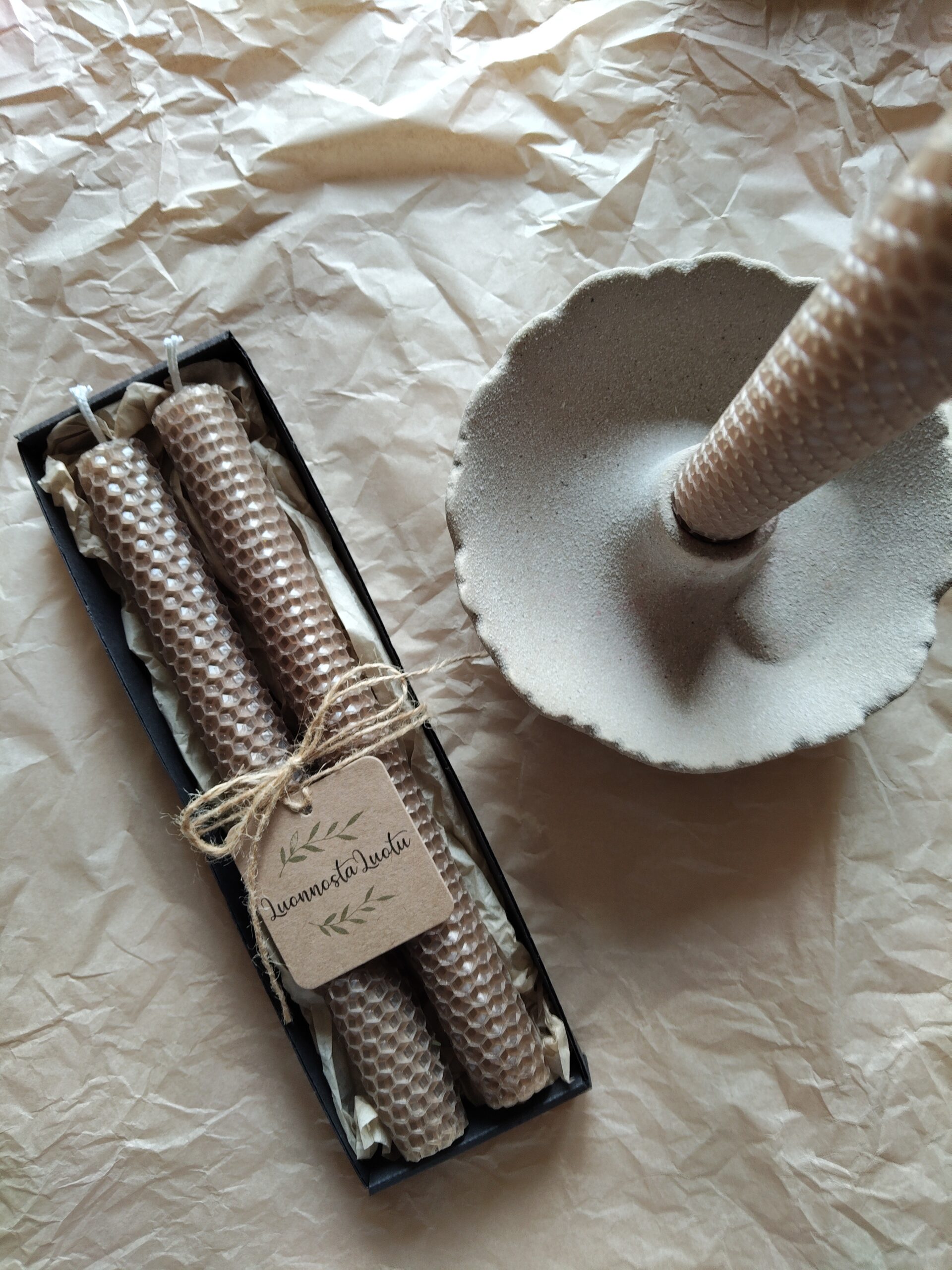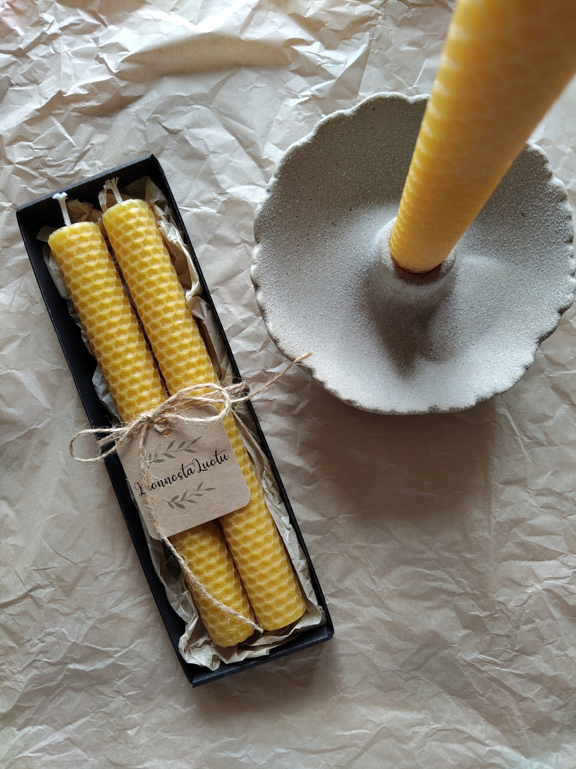 Materiaali: mehiläisvaha, sydänlanka puuvillaa